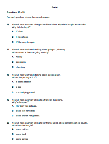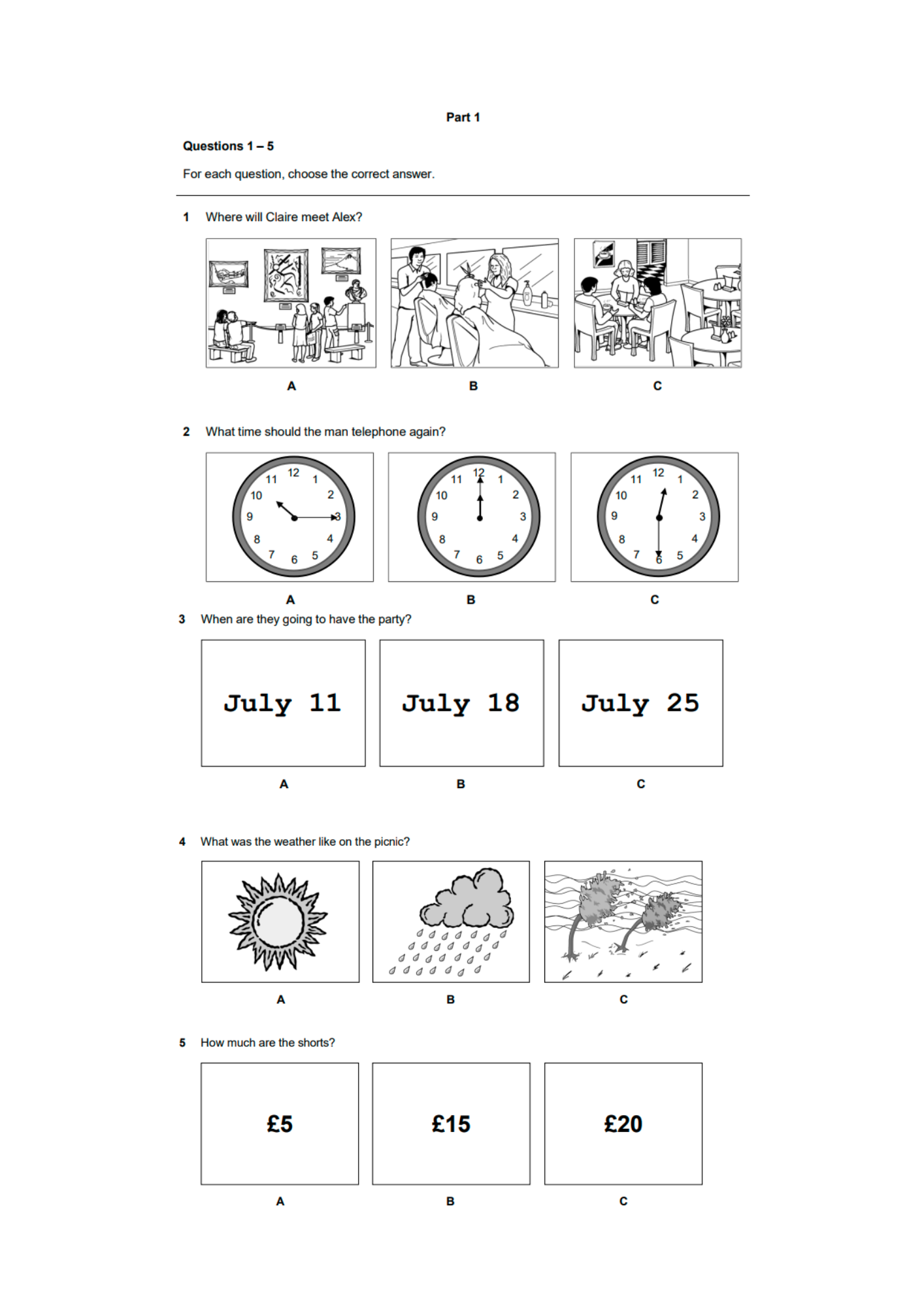 Le Listening se compose de 25 questions divisées en 5 parties et chaque section de cette partie de l'examen a des objectifs différents.